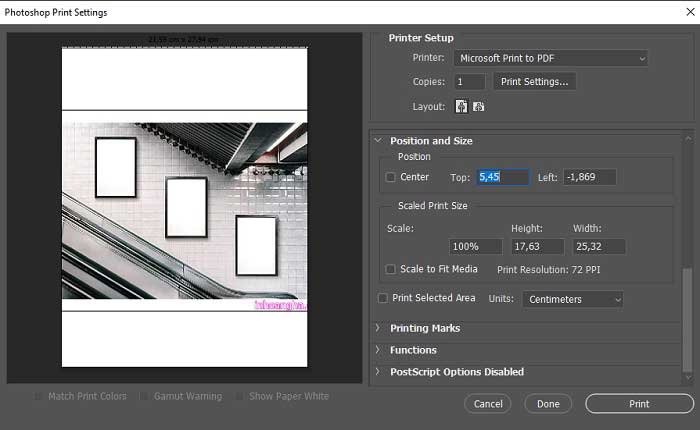Photoshop thường được sử dụng bởi các chuyên gia đồ họa. Vì vậy nó có nhiều – và phức tạp hơn – các cài đặt in hơn hầu hết các chương trình khác. Hầu hết chúng đều liên quan đến chất lượng và độ phân giải của hình ảnh, vì vật bạn không cần phải xử lý chúng trong trường hợp này.